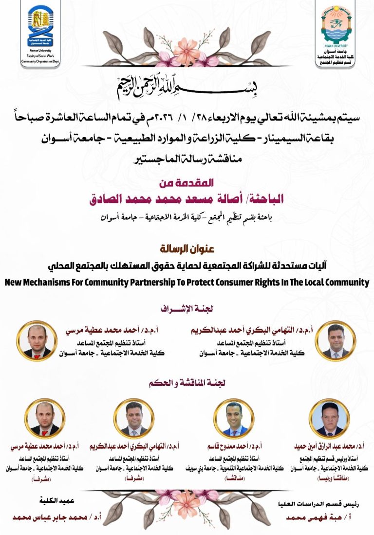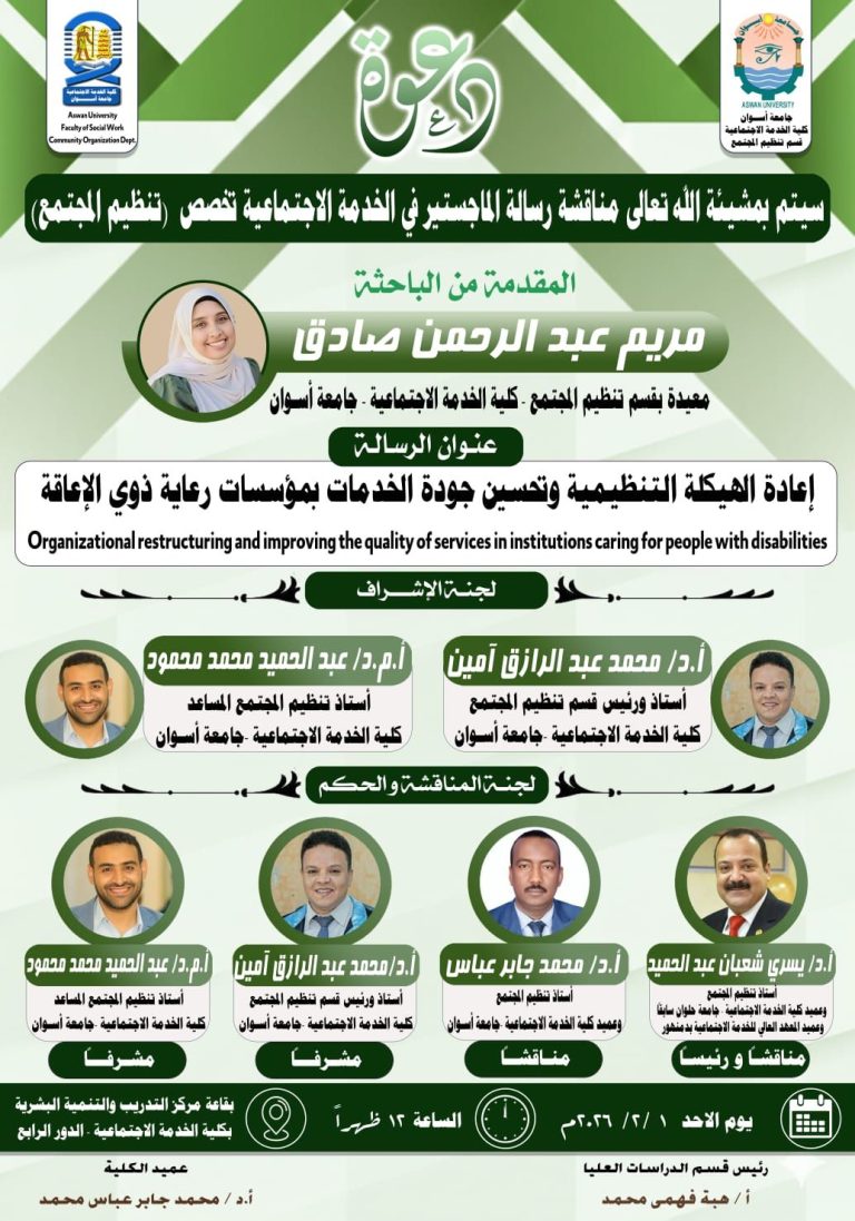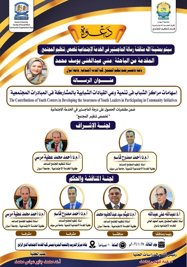 مناقشة رساله ماجستير بقسم تنظيم المجتمع