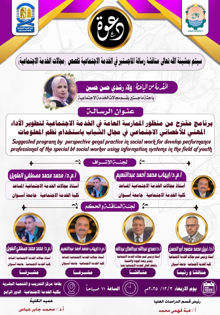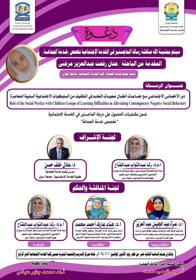 مناقشة رسالة ماجستير بقسم مجالات الخدمة الاجتماعية