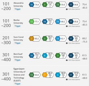 قال الأستاذ الدكتور أحمد غلاب محمد رئيس جامعة أسوان أنه حققت جامعة أسوان تصنيفيا جديدا ضمن 23 جامعة مصرية ضمن 767 جامعة عالمية في تصنيف التايمز البريطاني والتي تضم 17 هدف لتأثير الجامعات في تحقيق أهداف التنمية المستدامة لعام 2020 علي مستوي 85 دولة حققت جامعة أسوان عدة مراكز متقدمة في 6محاور من محاور التنمية المستدامة وهي 201-200 في الهدف الحادي عشر (مدن ومجتمعات محلية مستدامة ) وفي التغير المناخي