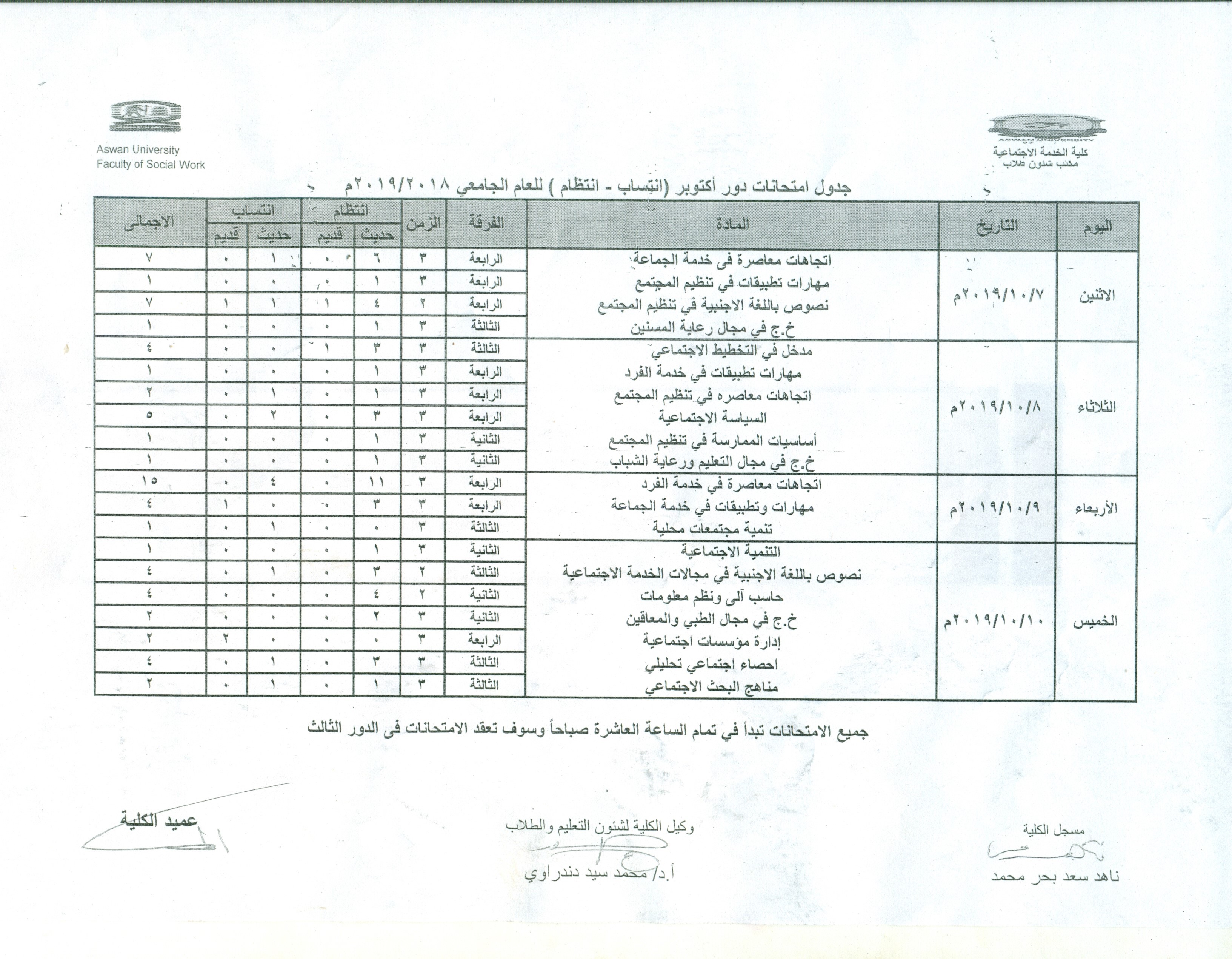 4 Sep dolagy جدول أمتحانات دور أكتوبر (انتساب- انتظام) للعام الجامعى 2018-2019 جدول أمتحانات دور أكتوبر (انتساب- انتظام) للعام الجامعى 2018-2019
