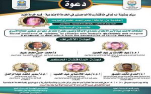 سوف سيتم مناقشة رسالة الماجستير في الخدمة الاجتماعية – قسم خدمة الفرد من الباحثة \ سمرأحمد خضري أبو زيد – المعيدة بقسم خدمة الفرد