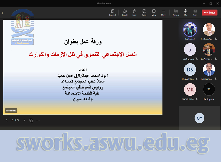 - العمل الاجتماعي التنموي في ظل الأزمات والكوارث، للأستاذ الدكتور/ محمد عبد الرازق أمين