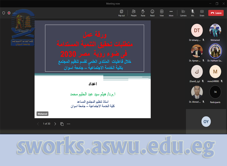 - متطلبات تحقيق التنمية المستدامة في ضوء رؤية مصر ٢٠٣٠، للأستاذ الدكتور/ هيثم سيد عبد الحليم