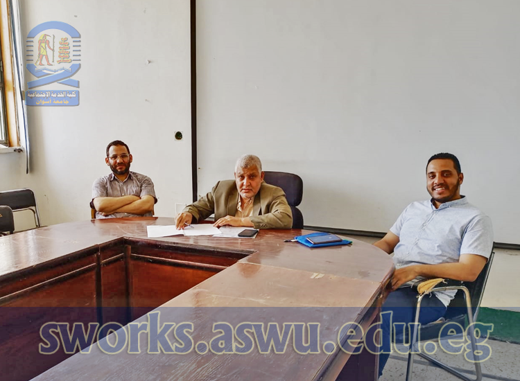 اجتمع يوم الأثنين الموافق ٢٠٢٣/٤/١٠ م قسم خدمة الفرد، وتم من خلاله مناقشة بعض النواحي الادارية وايضاً مناقشة بعض الافكار البحثية لطلاب الدراسات العليا بالقسم.