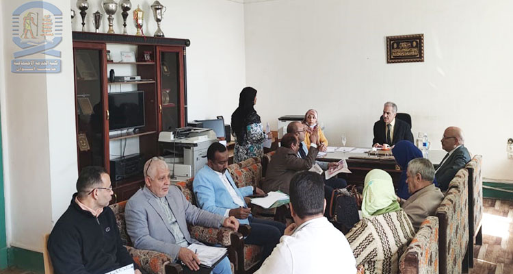 وقد تم خلال الاجتماع مناقشة العديد من الموضوعات المرتبطة بالأقسام العلمية والأمور الإدارية والعلمية بالكلية، والاستعداد لامتحانات الفصل الدراسي الأول، ومنح وتعيين بعض الباحثين والهيئة المعاونة بالكلية.
