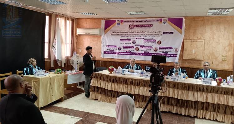 تمت مناقشة رسالة الماجستير المقدمة من الباحثة/ ولاء رشدي حسن وذلك يوم الأربعاء الموافق ٢٠٢٥/١٢/٣م في تمام الساعة الحادية عشر صباحاً بقاعة مركز التدريب والتنمية البشرية بالدور الرابع بكلية الخدمة الاجتماعية.