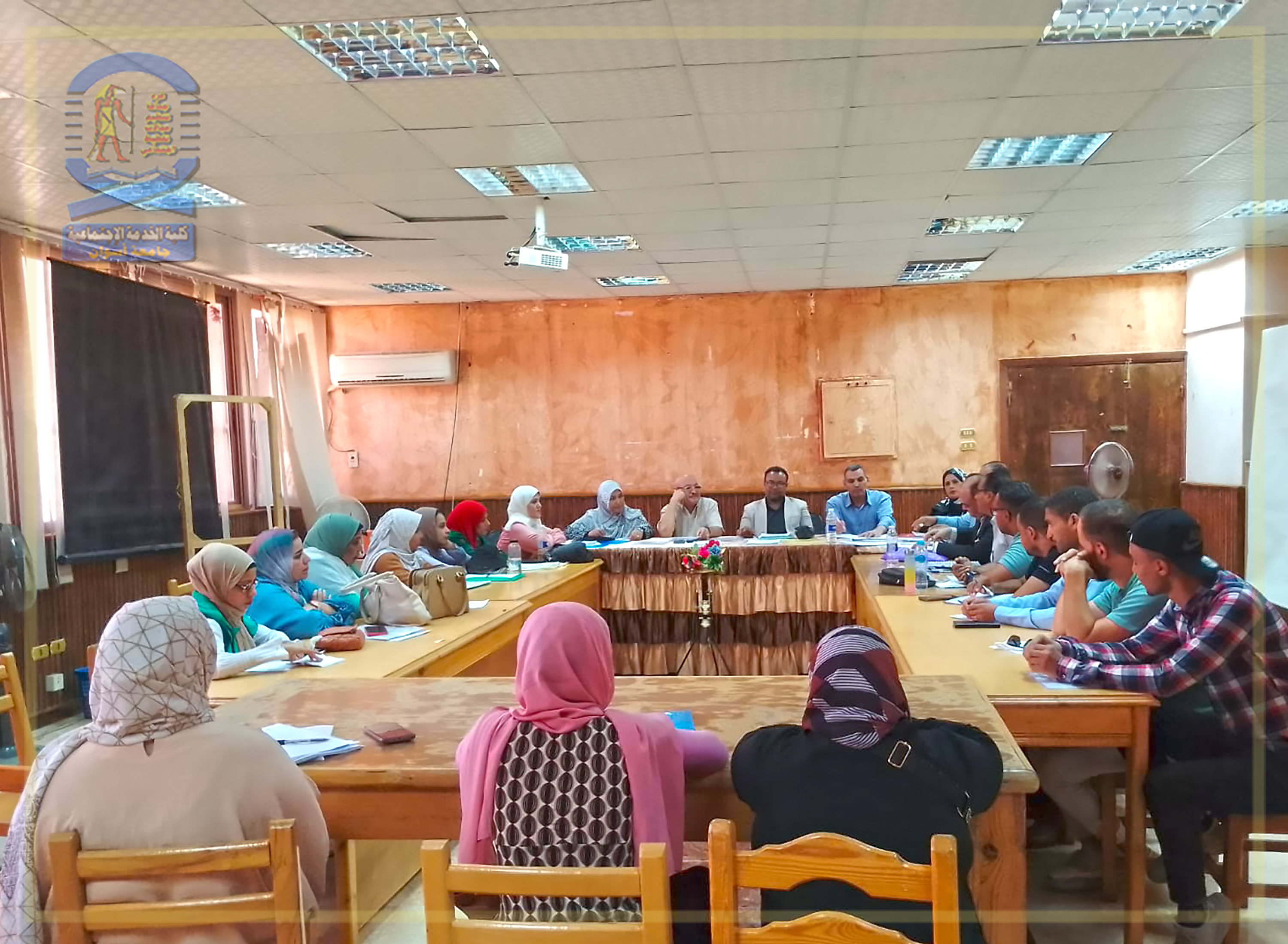 وعُقد السمينار برئاسة (أ.د/ عبدالمنعم سلطان الجيلاني – أستاذ ورئيس قسم مجالات الخدمة الاجتماعية )، وذلك بحضور :