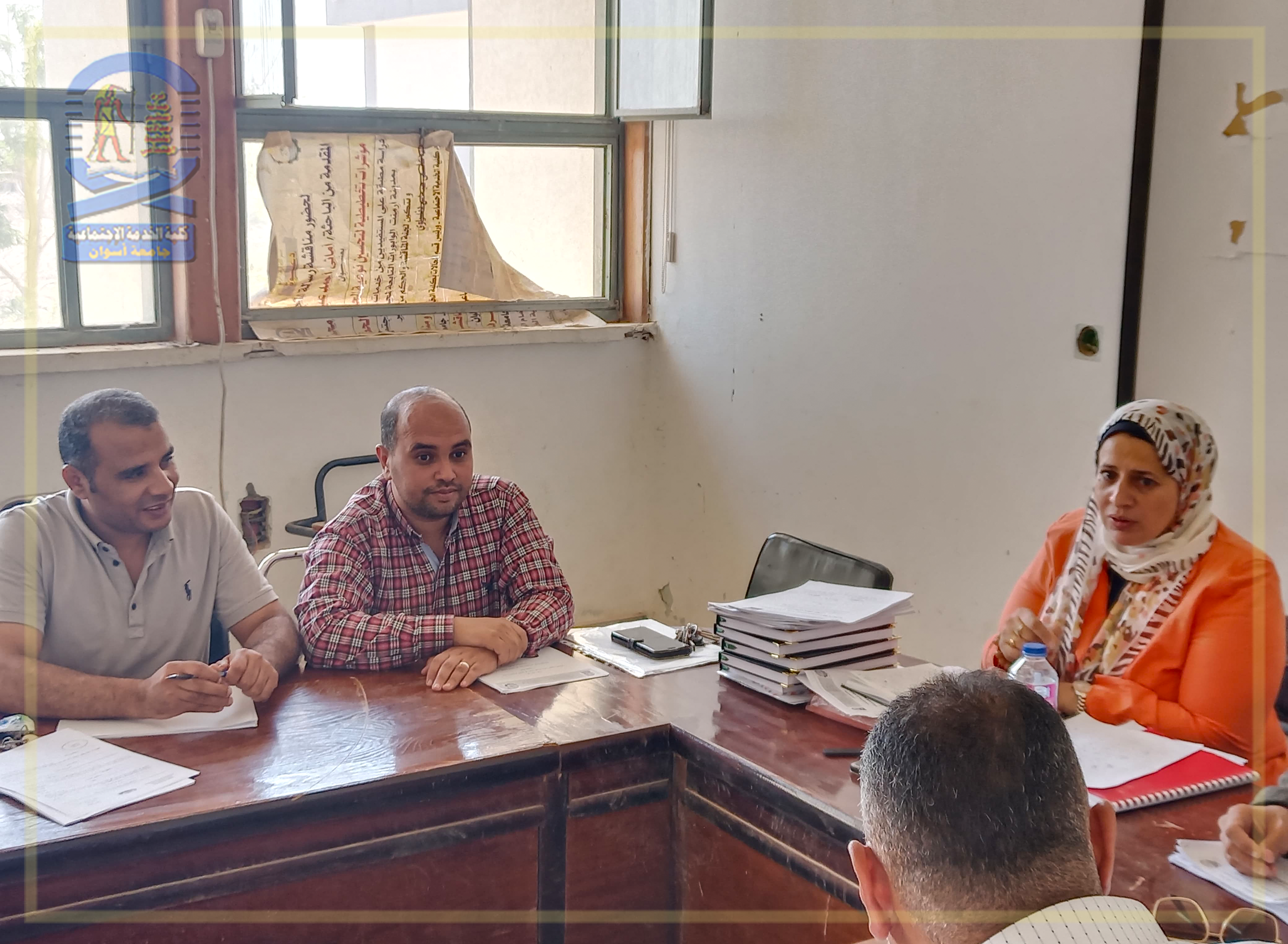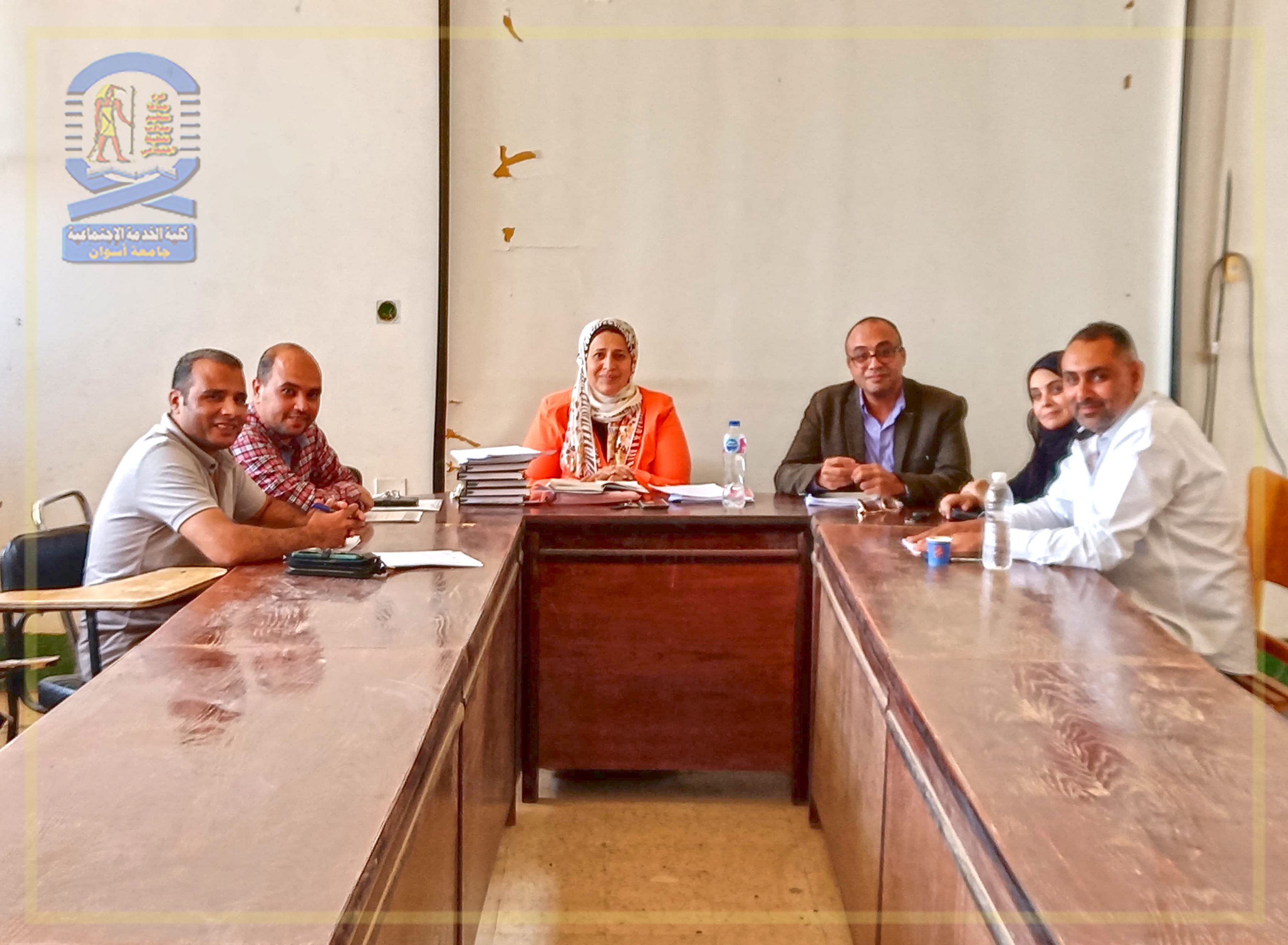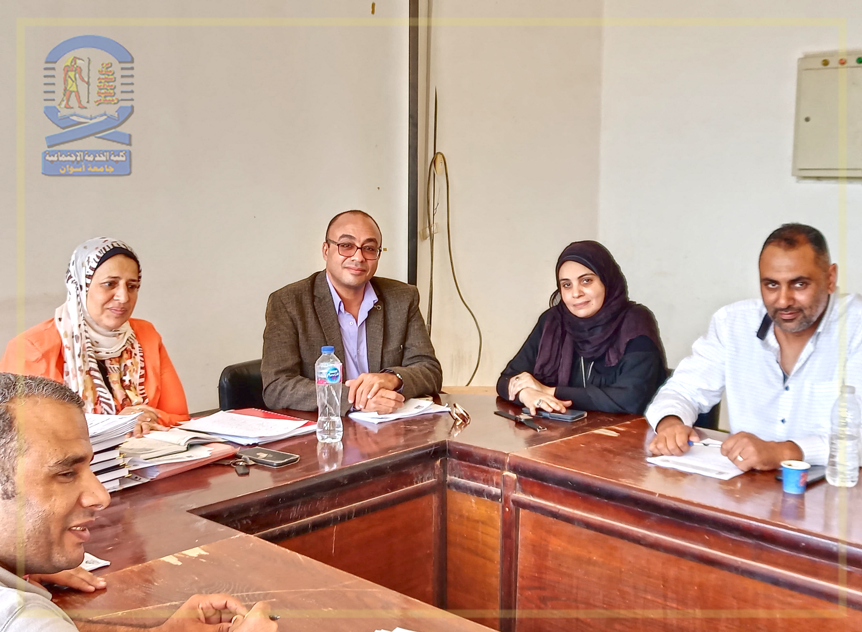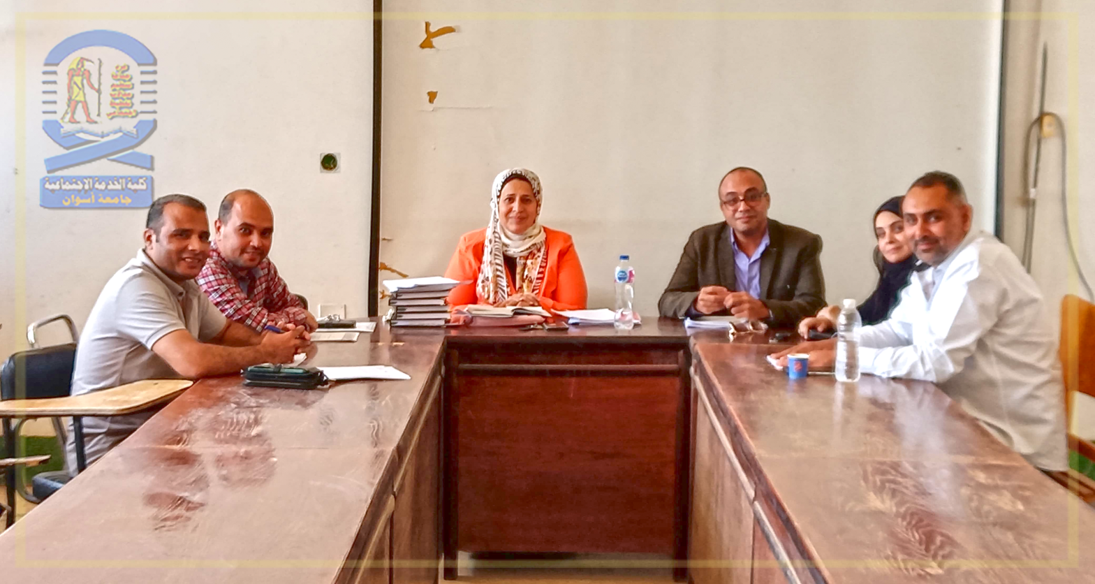 وعُقد الإجتماع برئاسة (الأستاذ الدكتور/ هناء عارف أحمد – أستاذ ورئيس قسم خدمة الجماعة)، وبحضور: