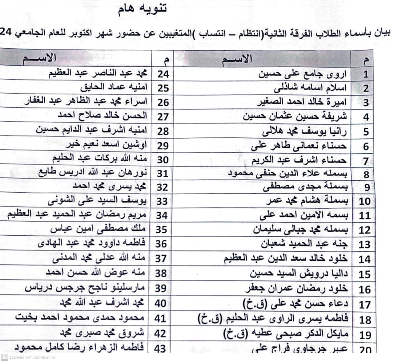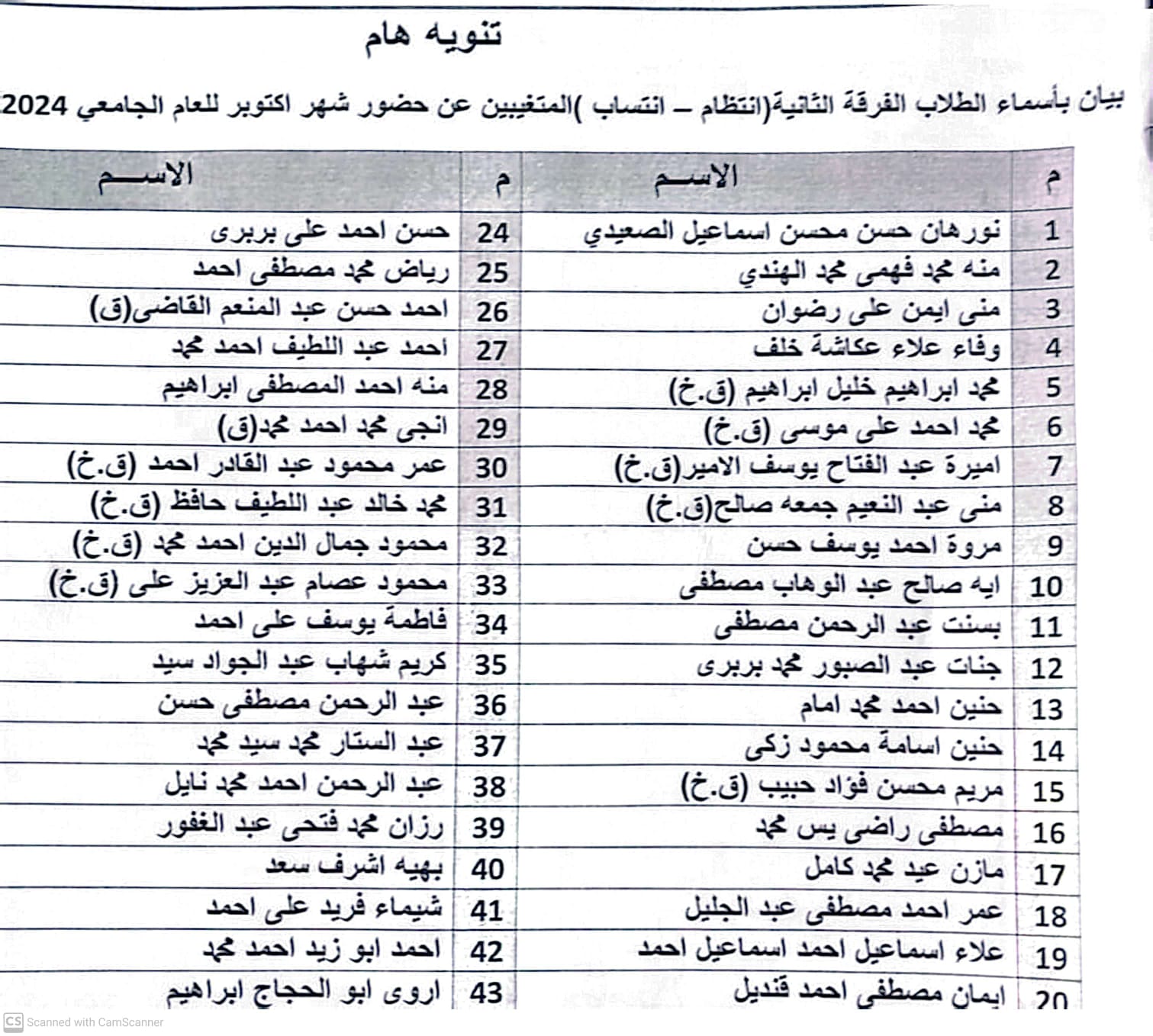 10 Nov Social Work Editor إعلان هام بيان بأسماء الطلاب الفرقة الثانية المتغيبين عن حضور التدريب لشهر اكتوبر للعام الجامعي ٢٠٢٥/٢٠٢٤م