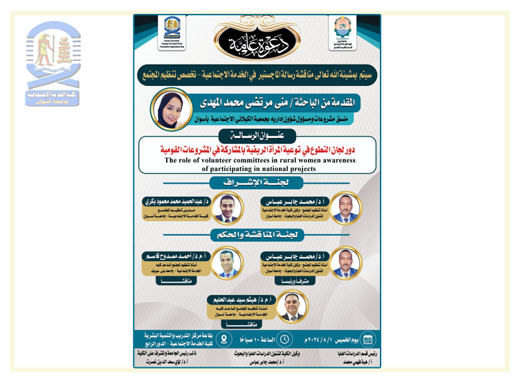 اعلان مناقشة ماجستير بقسم تنظيم المجتمع