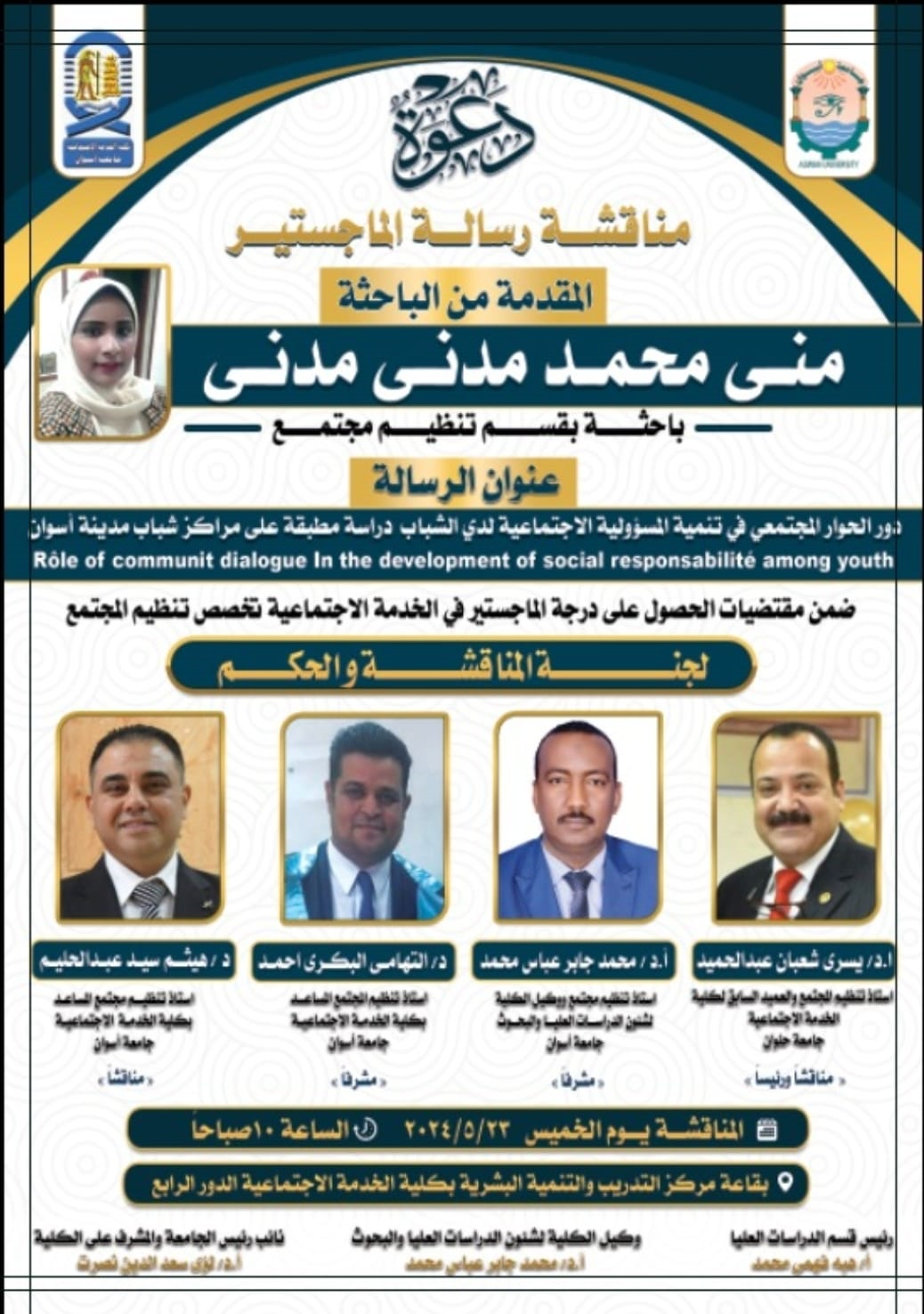 اعلان مناقشة ماجستير بقسم تنظيم المجتمع