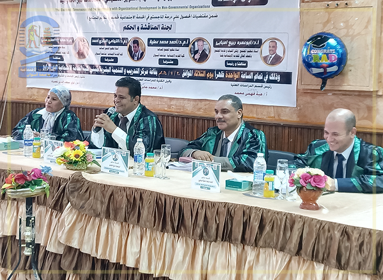 نوقشت اليوم الثلاثاء الموافق ٢٠٢٤/٧/٣٠م الرسالة العلمية للدارس “عبدالرازق رجب سليمان– بقسم تنظيم المجتمع” وذلك ضمن متقتضيات الحصول على درجة الماجستير.