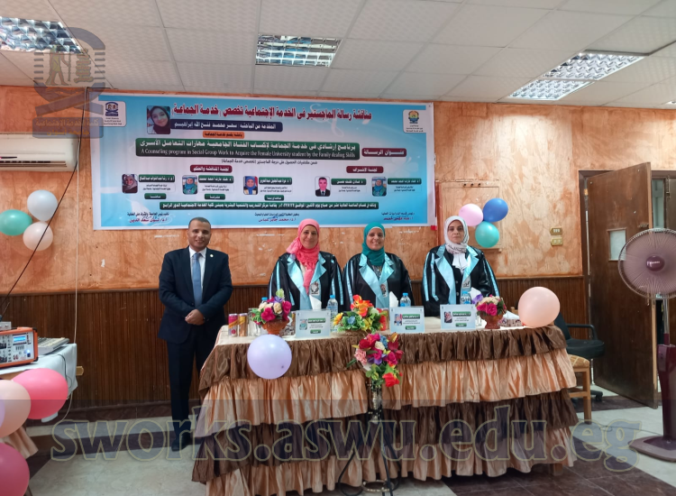 - أ.م.د/ رشا عبدالتواب عبدالفتاح – أستاذ خدمة الجماعة المساعد بكلية الخدمة الاجتماعية – جامعة أسوان (مناقشاً).