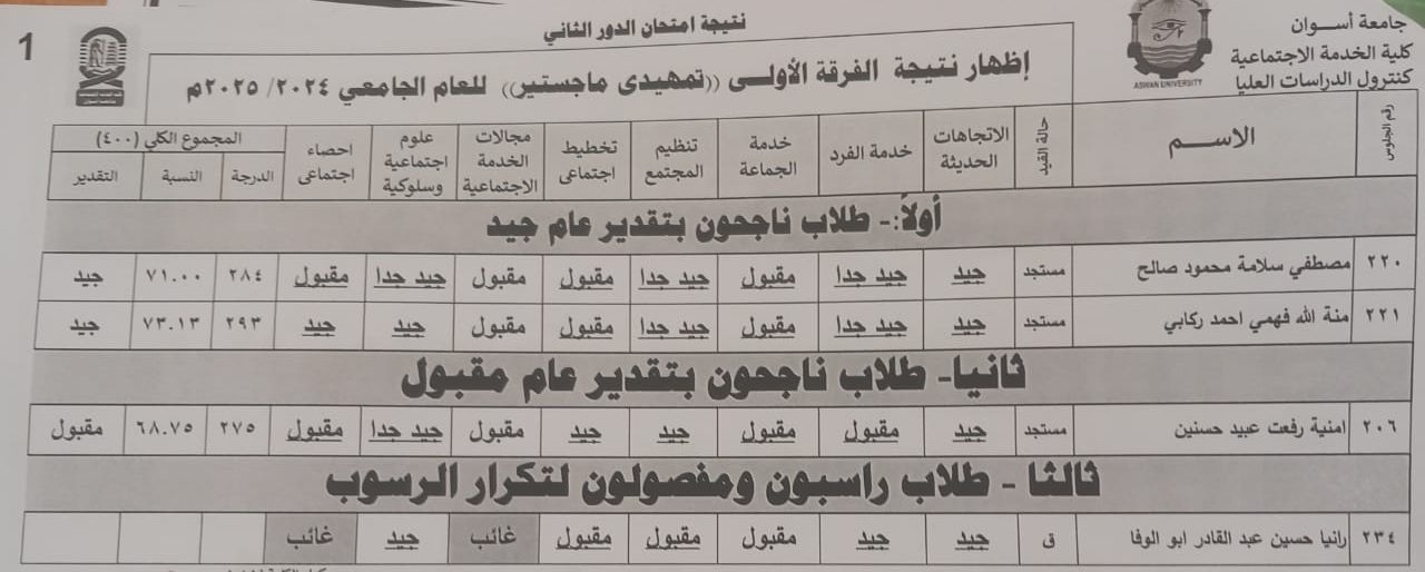 [كلية الخدمة الإجتماعية] [2022] جميع الحقوق محفوظة لمركز المعلومات وشبكة الاتصالات – جامعة أســـوان
