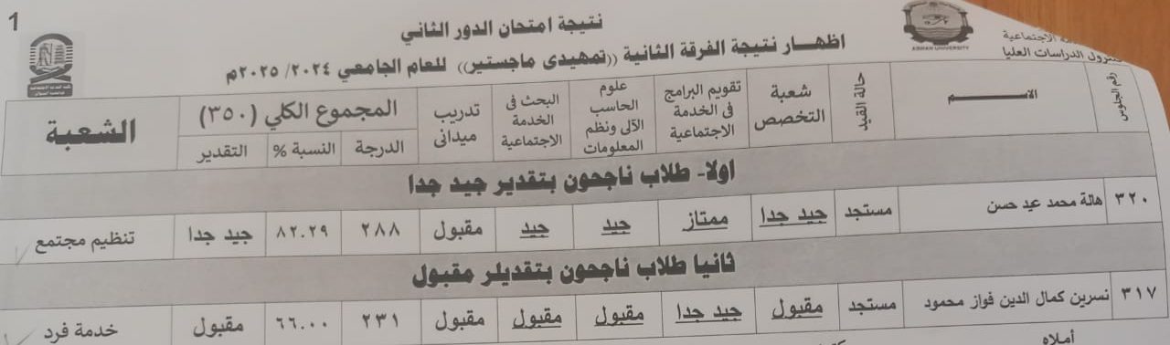 تم اعتماد  نتيجة الماجستير الدراسات العليا-  ٢٠٢٤-٢٠٢٥ م