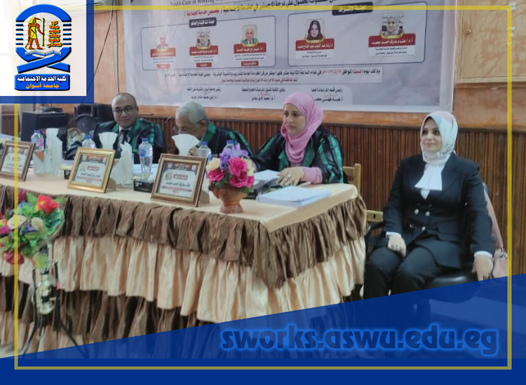 والرسالة بعنوان “ متطلبات تفعيل دور الأخصائيين الإجتماعيين العاملين برعاية الشباب في العمل مع جماعة النشاط العلمي والتكنولوجي ” .