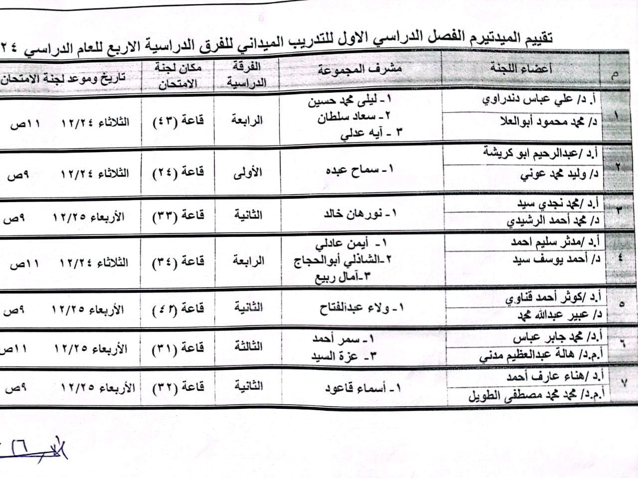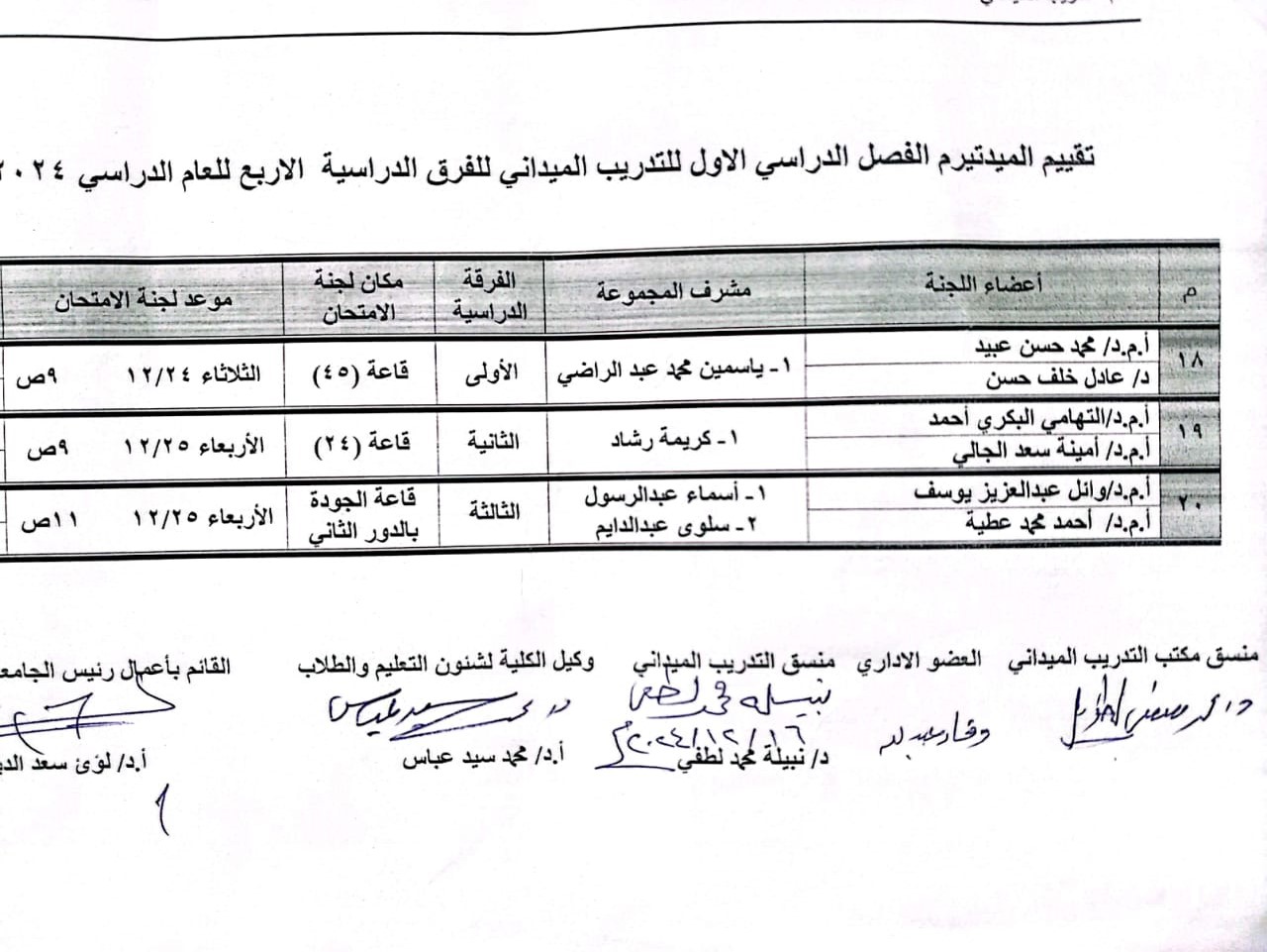 تقييم الميد تيرم الفصل الدراسي الاول للفرق الأربعة للعام الجامعي ٢٠٢٥/٢٠٢٤