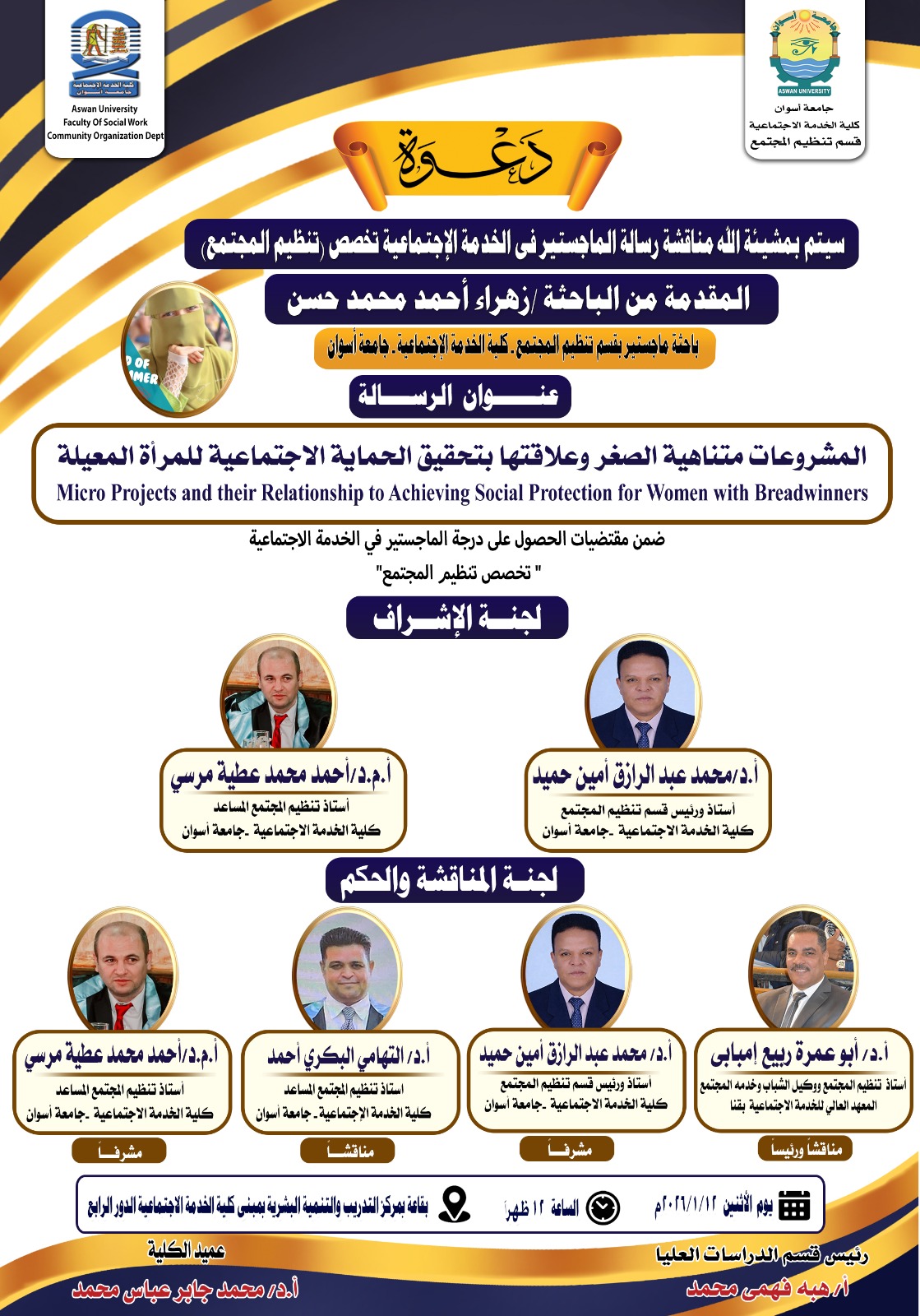تحت رعاية السيد الأستاذ الدكتور/ محمد جابر عباس – عميد الكلية والسيد الأستاذ الدكتور/ نبيل محمد أبو الحسن – رئيس قسم مجالات الخدمة الاجتماعية تم عقد السيمينار العلمي لقسم مجالات الخدمة الاجتماعية وذلك يوم الأحد الموافق ١١ يناير ٢٠٢٦م ، وذلك لمناقشة الخطة البحثية (فكرة) المقدمة من الباحثة/ أماني شعبان – مرحلة الدكتوراة وقد حضر […]