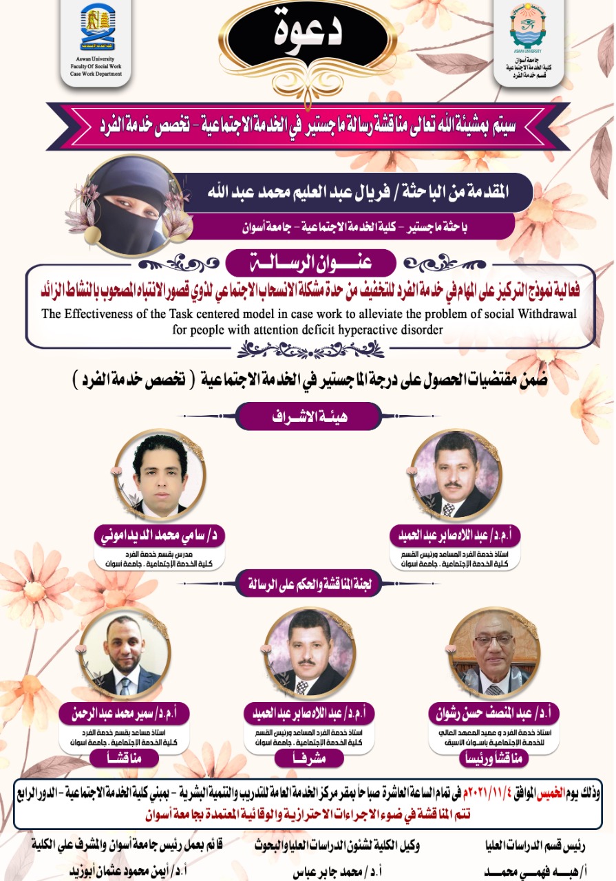 دعوة سمينار عام للدارستين “أمل حسين”،و “رحاب صلاح”