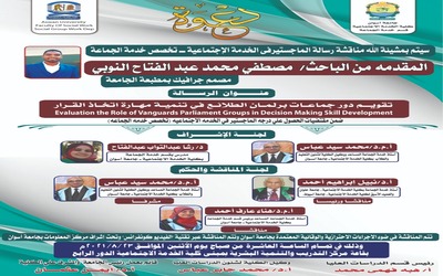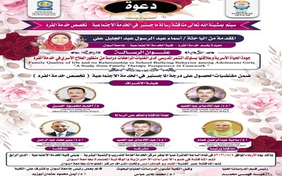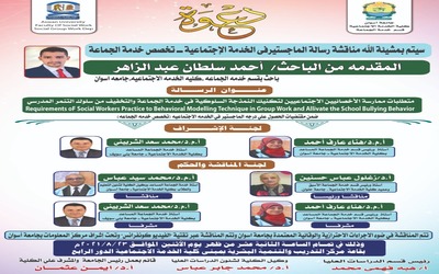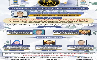 سيتم مناقشة رسالة الماجستير في الخدمة الاجتماعية –تخصص خدمة الجماعة المقدمة من الباحث / أحمد سلطان عبد الزاهر – باحث بقسم خدمة الجماعة – كلية الخدمة الاجتماعية – جامعة أسوان وذلك في تمامالثانية عشر من ظهر يوم الأثنين الموافق 2021/8/23 بقاعة مركز التدريب والتنمية البشرية بمبني كلية الخدمة الاجتماعية الدور الرابع عنــــــــــوان الرسالة “متطلبات ممارسة […]