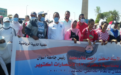 ووضح الأستاذ الدكتور \ أحمد غلاب محمد – رئيس جامعة اسوان بمشاركة الطلاب باليوم رياضي الذي تتضمن ماراثون الجري من المسلة الناقصة بطريق المطار إلي الحرم الجامعي بصحاري شارك فيه 150 طالب و100 طالبة ثم مشاركةأعضاء هيئة التدريس ورئيس الجامعة وعميد كلية التربية الرياضية في نهاية الماراثون تم توزيع الجوائز للفائزين وكأس المركز الأول كما […]