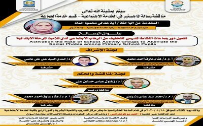سوف يتم مناقشة رسالة الماجستير في الخدمة الاجتماعية – قسم خدمة الجماعة – المقدمة من الباحثة \ اية عدلي محمود حماد معيدة بقسم خدمة الجماعة – بكلية الخدمة الاجتماعية – جامعة اسوان وذلك يوم الثلاثاء الموافق 18\8\2020 في تمام الساعة العاشرة صباحاً عنوان الرسالة ( تفعيل دور جماعات النشاط المدرسي لتخفيف من الرهاب الاجتماعيى […]