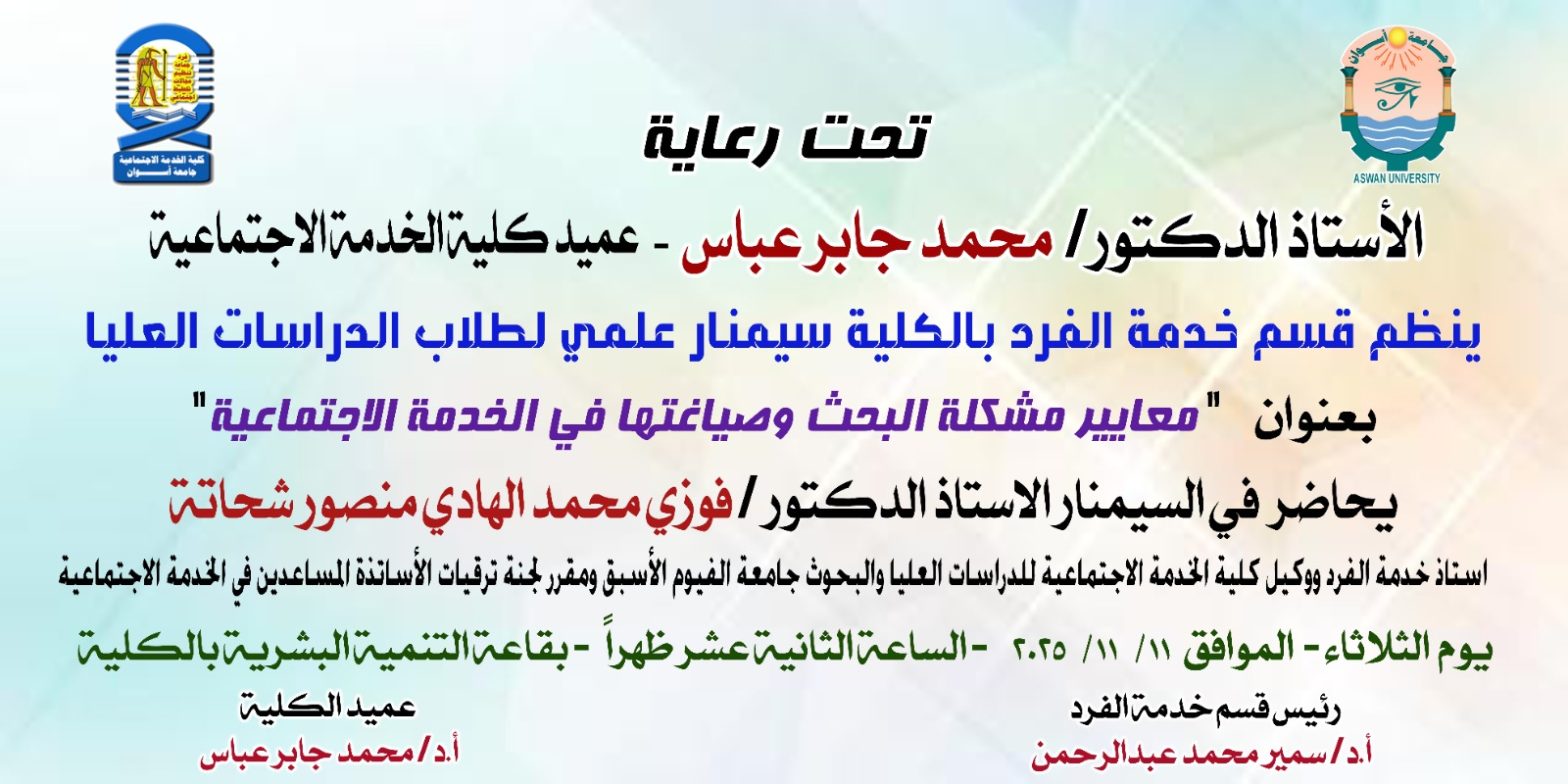 تحت رعاية الاستاذ الدكتور / محمد جابر عباس محمد- عميد الكلية نظم قسم تنظيم المجتمع ورشة عمل بعنوان (استخدام قواعد البيانات العالميه وطرق التوثيق العلمي) وتمت ورشة العمل بادارة الاستاذ الدكتور/عبدالحميد محمد محمود بكري استاذ تنظيم المجتمع المساعد وحضور أعضاء هيئة التدريس بقسم تنظيم المجتمع والهيئة المعاونه والباحثبن بمرحلة الماجستير والدكتوراه بالقسم كما شارك في […]