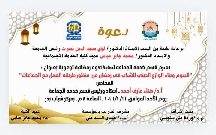 تحت رعاية كريمة من معالي الأستاذ الدكتور/ لؤي سعدالدين نصرت (رئيس الجامعة) وسعادة الأستاذ الدكتور/ محمد جابر عباس محمد (عميد الكلية) تتوالى سلسلة الفعاليات التي ينظمها قسم خدمة الفرد ، حيث تم اليوم الأحد الموافق 22 فبراير 2026م تنظيم ندوة بعنوان:: (الصوم والتغيير “كيف نغير حياتنا في رمضان؟”) وذلك لتلاميذ الصف السادس الابتدائي – بالمعهد […]