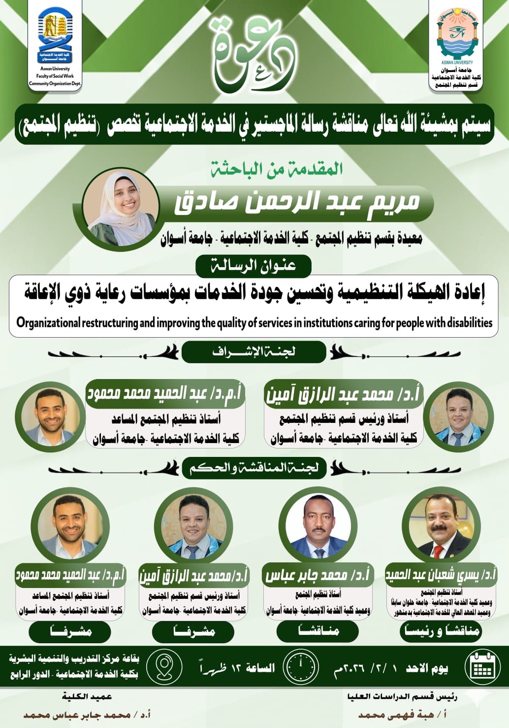 تحت رعاية الأستاذ الدكتور/ محمد جابر عباس محمد (عميد الكلية). وبرئاسة الأستاذ الدكتور/ سمير محمد عبدالرحمن حسن (رئيس قسم خدمة الفرد). تم انعقاد مجلس قسم خدمة الفرد اليوم الثلاثاء الموافق 10 فبراير 2026م. وبحضور أعضاء مجلس القسم الآتي أسمائهم:- 1- أ.د/ سمير محمد عبدالرحمن حسن (رئيس مجلس القسم) 2- أ.د/ عبداللاه صابر عبدالحميد (أمين الجلسة) […]