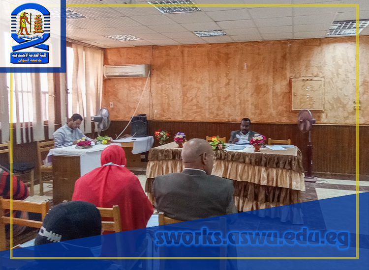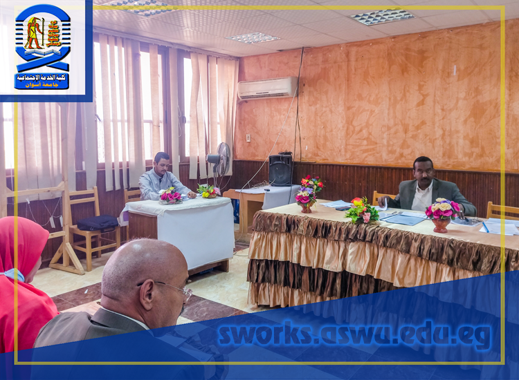 وذلك برئاسة ” أ.د/محمد جابر عباس – أستاذ تنظيم المجتمع ووكيل الكلية لشئون الدراسات العليا والبحوث”، وبحضور كل من الأساتذة أعضاء التدريس :