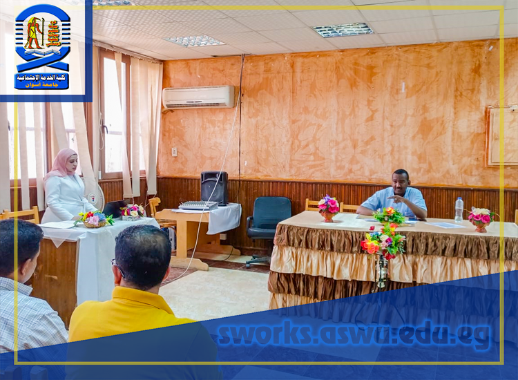 وذلك برئاسة ” أ.د/محمد جابر عباس – أستاذ تنظيم المجتمع ووكيل الكلية لشئون الدراسات العليا والبحوث”، وبحضور كل من الأساتذة أعضاء التدريس :