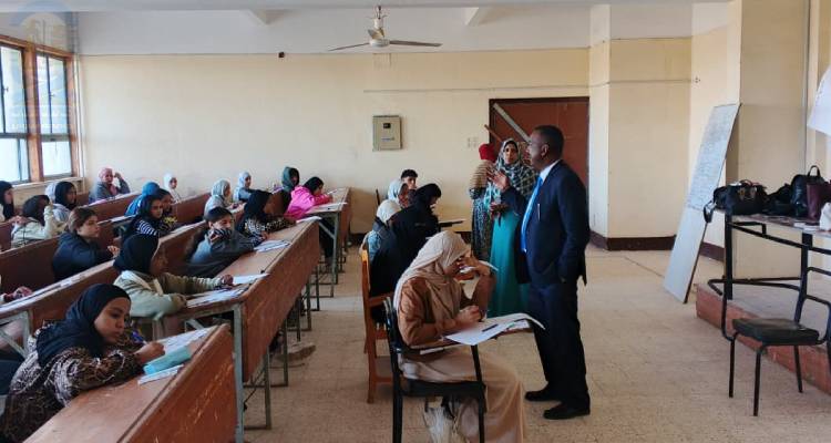 وتفقد عميد الكلية لجان الامتحانات للاطمئنان علي سير الامتحانات وانتظامها .