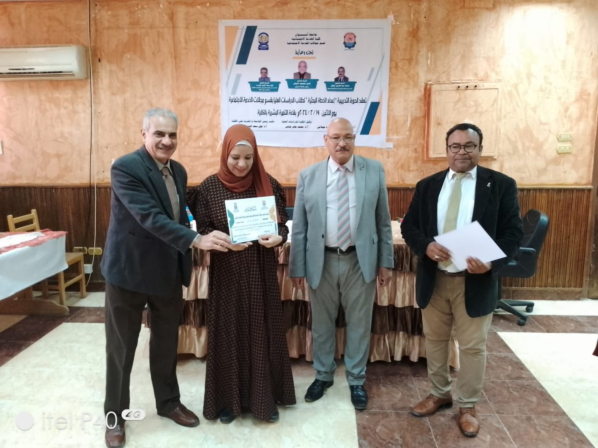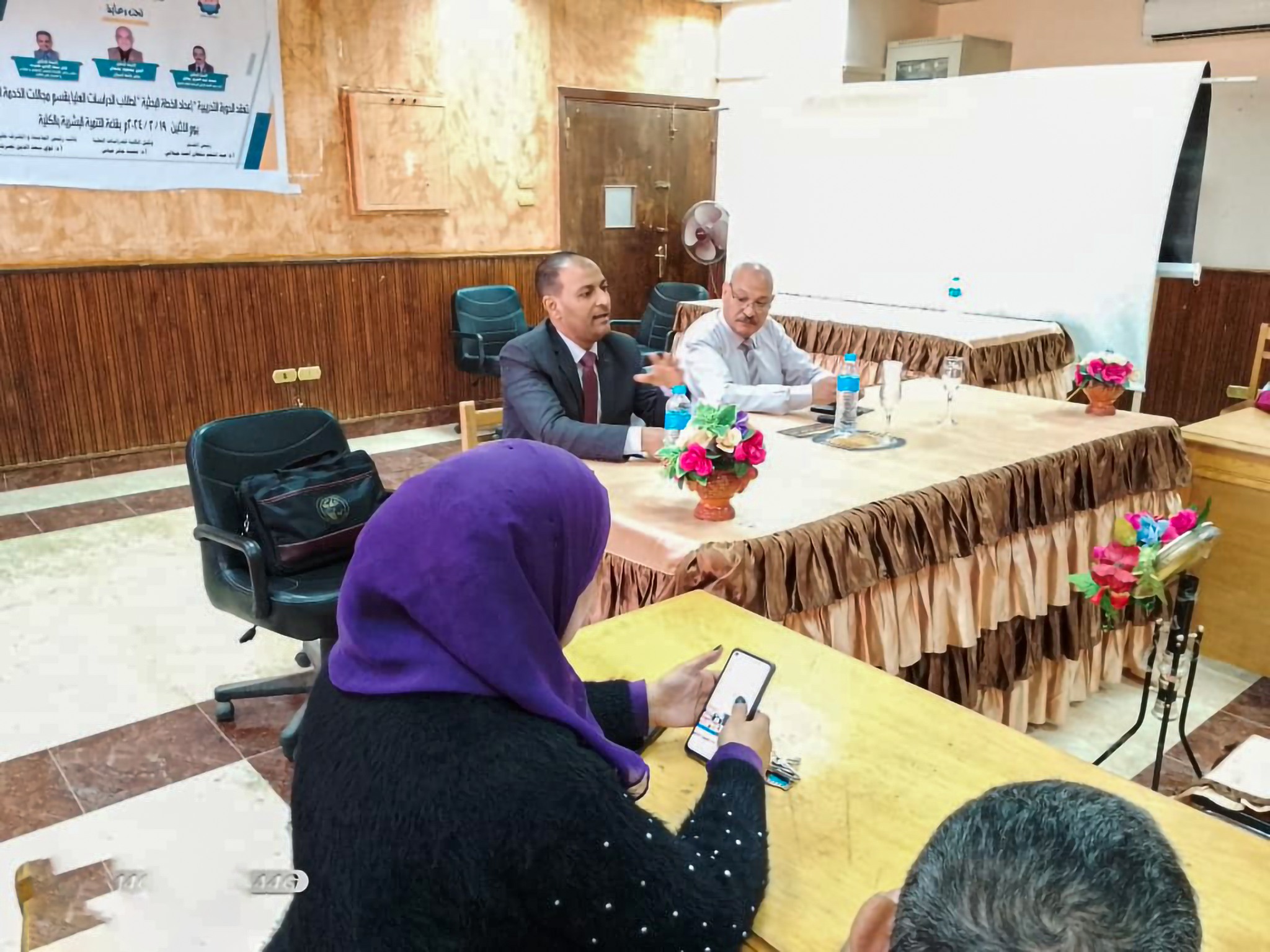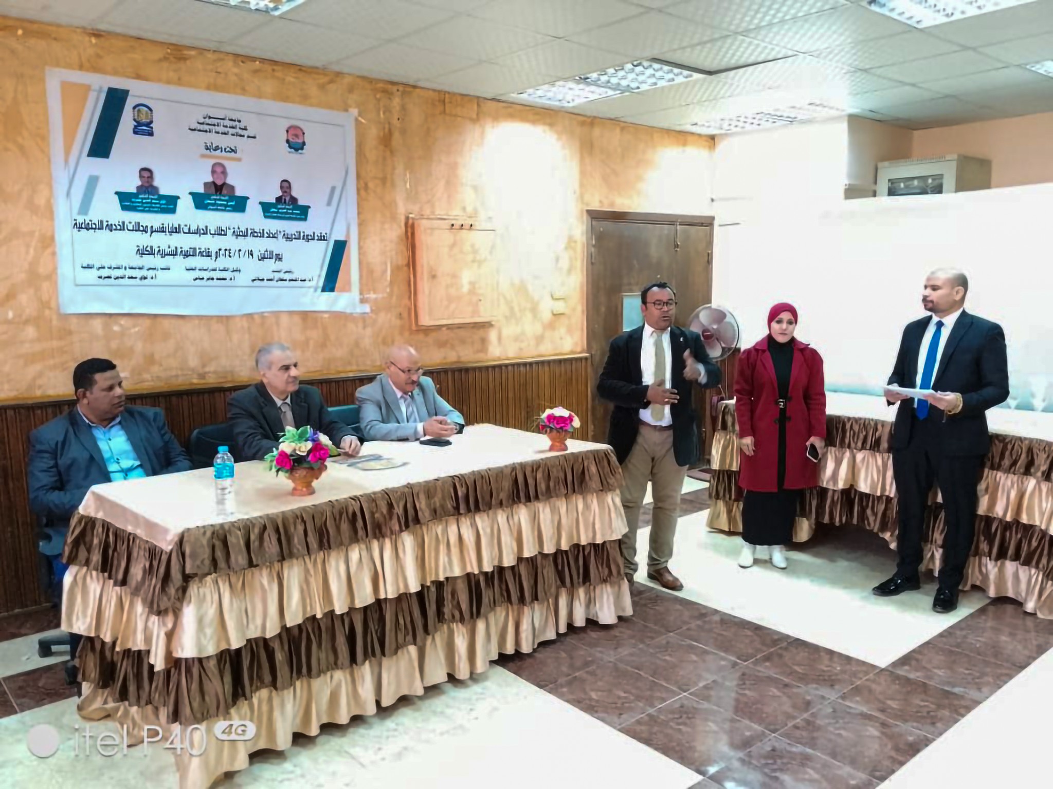 بدأت الجلسة الافتتاحية برئاسة أ.د/ عبدالمنعم الجيلاني – رئيس القسم، ورحب بالسادة الحضور من أعضاء هيئة التدريس والهيئة المعاونة والطلاب وأكد على أهمية التدريب ووضح الجدول الزمنى للدورة؛ وبدأت الجلسة الأولى برئاسة أ.د/ على دندراوي و أ.م.د/ حماده السيد، وتناولا خطوات إعداد الخطة البحثية وأهم الصفات التى يجب أن يتحلى بها الباحث، ثم الجلسة الثانية برئاسة أ.م.د/ أمينة الجالى و د/محمد الطويل، وتحدثا حول صياغة المفاهيم فى دراسات وبحوث الخدمة الاجتماعية وايضا الموجهات النظرية.