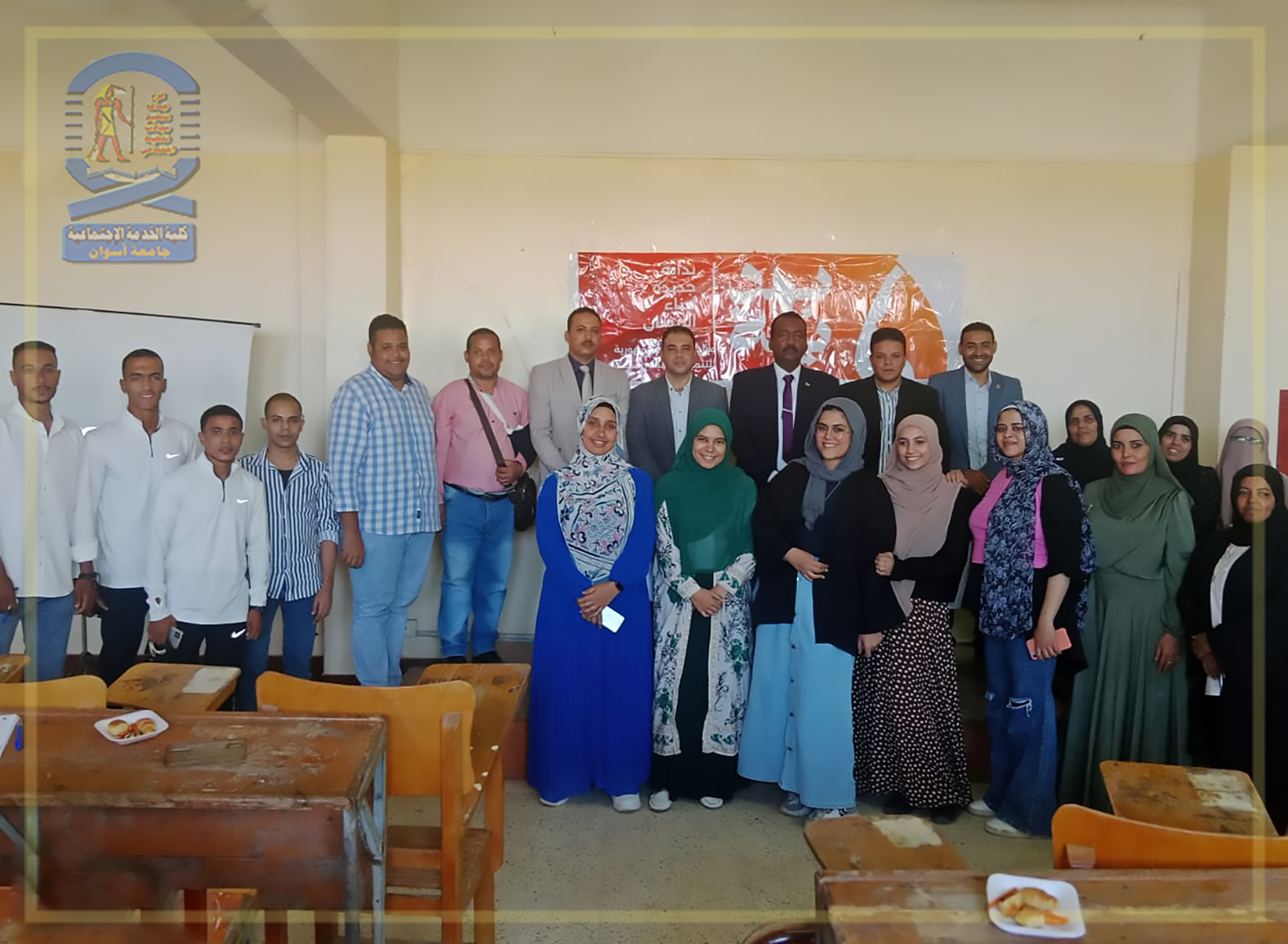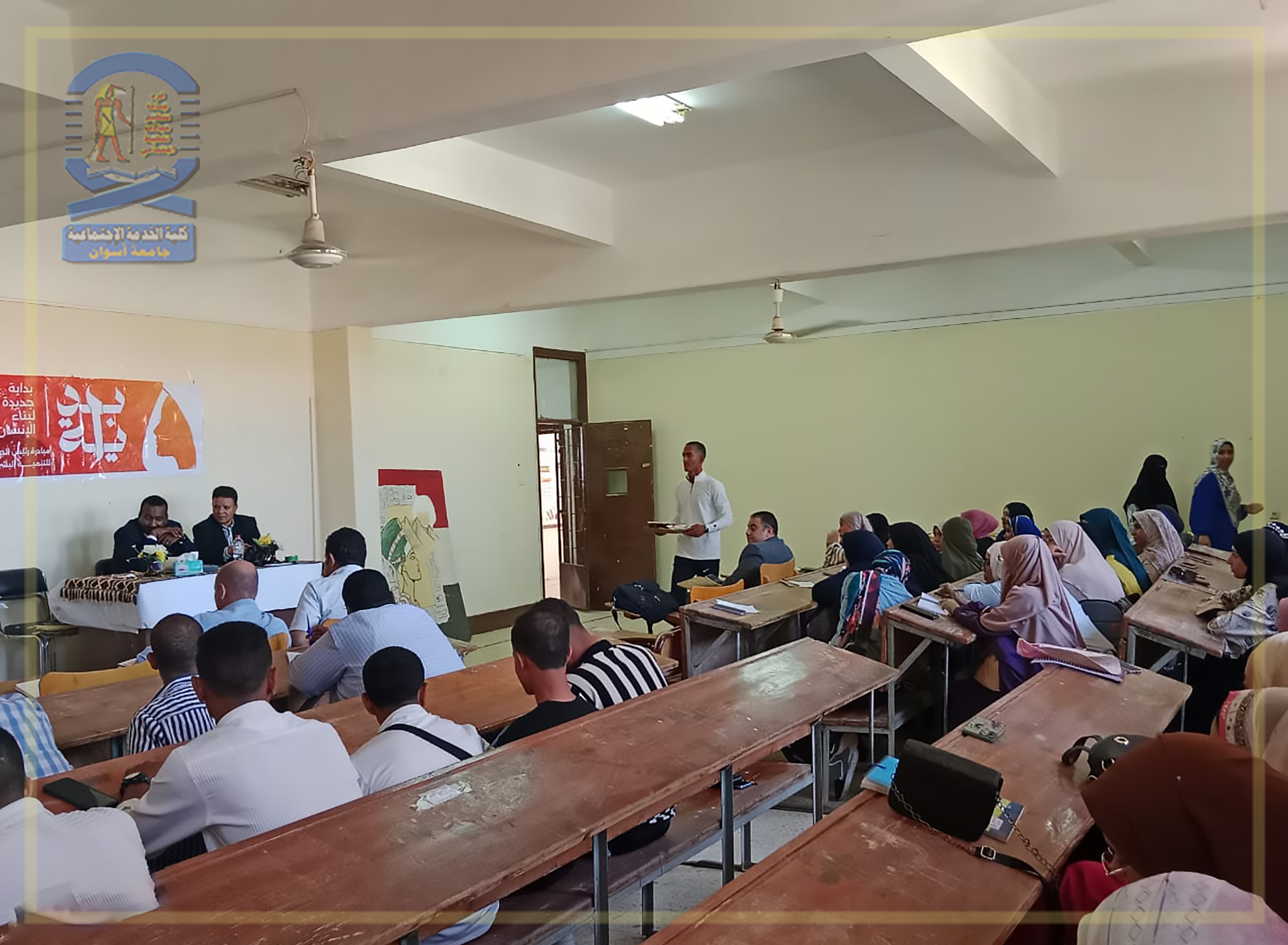 تحت رعاية معالي الأستاذ الدكتور/ لؤي سعد الدين نصرت – القائم بعمل رئيس الجامعة والمشرف على الكلية، نظم قسم تنظيم المجتمع اليوم الثلاثاء ٢٠٢٤/١٠/٨م ورشة عمل للإحتفال بإنتصارات أكتوبر المجيد وتدشين مبادرة “بداية جديدة لبناء الإنسان” وذلك في تمام الثانية عشر ظهراً، وقد تناولت ورشة العمل عرض أهداف ومحاور مبادرة بداية وأنشطتها ومجالاتها المختلفة وجهود كافة القطاعات ومنها وزارة التعليم العالي والجامعات في التوعية بمحاور المبادرة وتضمنت ورشة العمل بعض الفيديوهات عن المبادرة.