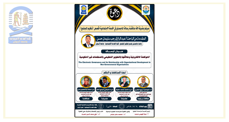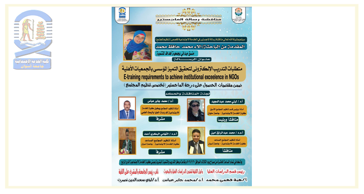 اعلان مناقشة ماجستير بقسم تنظيم المجتمع