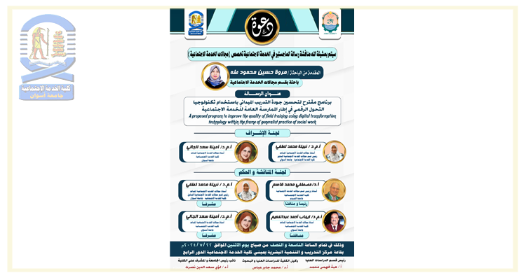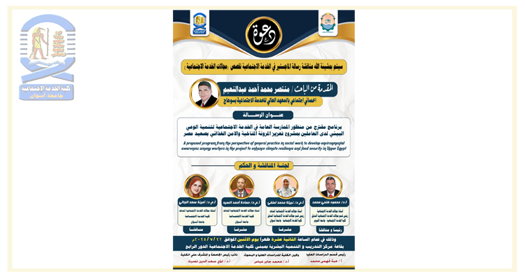 اعلان مناقشة ماجستير بقسم مجالات الخدمة الاجتماعية
