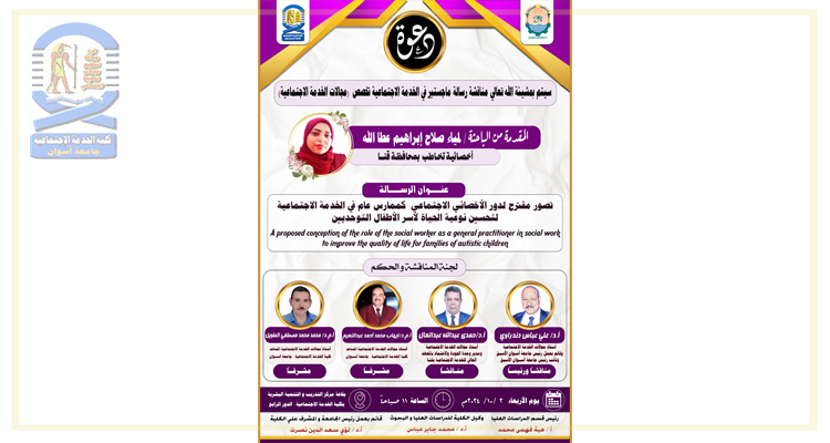 اعلان مناقشة ماجستير بقسم مجالات الخدمة الاجتماعية