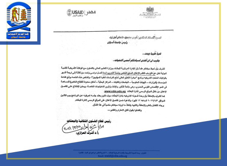 أعلنت الإدارة المركزية للبعثات بوزارة التعليم العالي وذلك بالتعاون مع الوكالة الأمريكية للتنمية الدولية عن فتح باب التقدم للإعلان السابع...