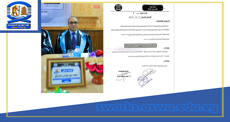 تحت رعاية “الأستاذ الدكتور/ مصطفى مدبولي – رئيس مجلس الوزراء”، و”الأستاذ الدكتور/ ايمن محمود عثمان – رئيس جامعة أسوان”، تقرر منح السادة: الدكتور/ حمدي السيد عاصي – المدرس بقسم خدمة الجماعة بكلية الخدمة الاجتماعية بجامعة أسوان الدكتور/ محمد حسن عبيد- المدرس بقسم خدمة الفرد بكلية الخدمة الاجتماعية بجامعة أسوان لقب وظيفة أستاذ مساعد